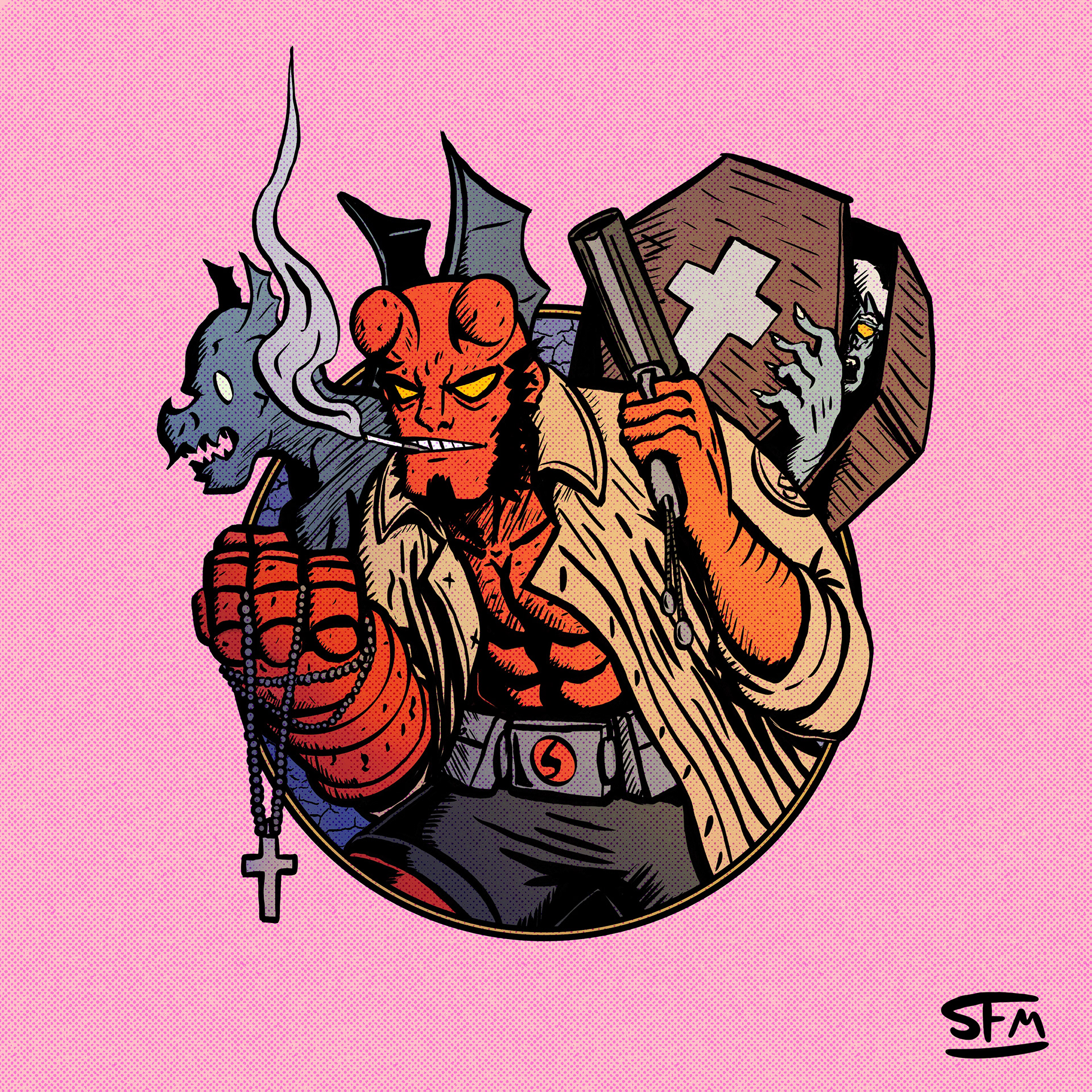 With this Hellboy illustration I took a lot of inspiration from Mike Mignola’s original work from the Hellboy comic while mixing in my own style. The result is this gritty little sketch of Hellboy doing his thing.
